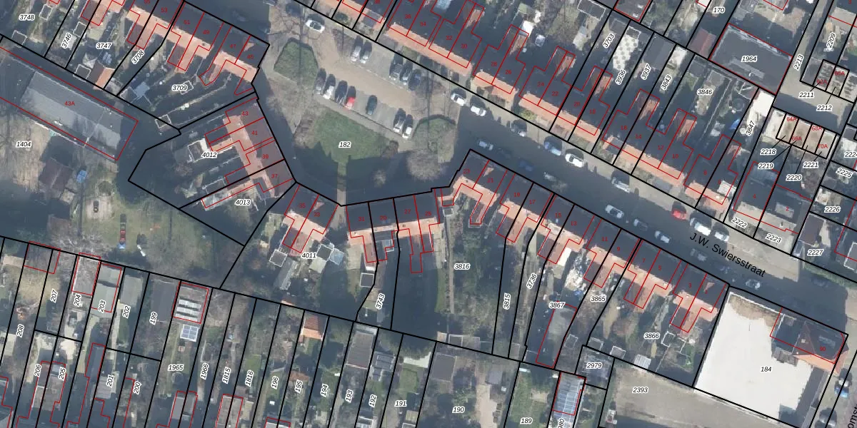 Het perceel waarop J.W. Swiersstraat 25 staat heeft een oppervlakte van 1020 m². Dit is een zeer groot perceel. De perceeloppervlakte wordt geregistreerd door het Kadaster. Gedetailleerde informatie over de maten van dit perceel kunt u vinden in het rapport Kadastrale kaart met maatvoering van J.W. Swiersstraat 25.