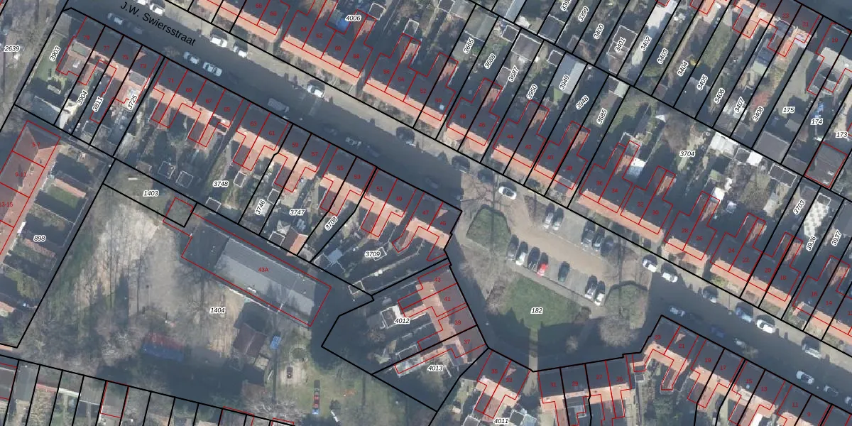 Het perceel waarop J.W. Swiersstraat 47 staat heeft een oppervlakte van 578 m². Dit is een groot perceel. De perceeloppervlakte wordt geregistreerd door het Kadaster. Gedetailleerde informatie over de maten van dit perceel kunt u vinden in het rapport Kadastrale kaart met maatvoering van J.W. Swiersstraat 47.