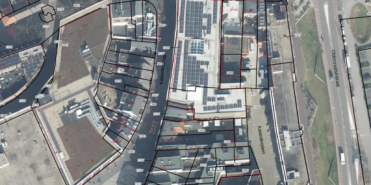 Kalanderstraat 9 is gelegen op kadastraal perceel ESD00B7336. Deze kadastrale aanduiding is uniek en wordt gebruikt door het Kadaster om eigendomsrechten en andere zakelijke rechten vast te leggen. Het perceel maakt onderdeel uit van de kadastrale gemeente Enschede.