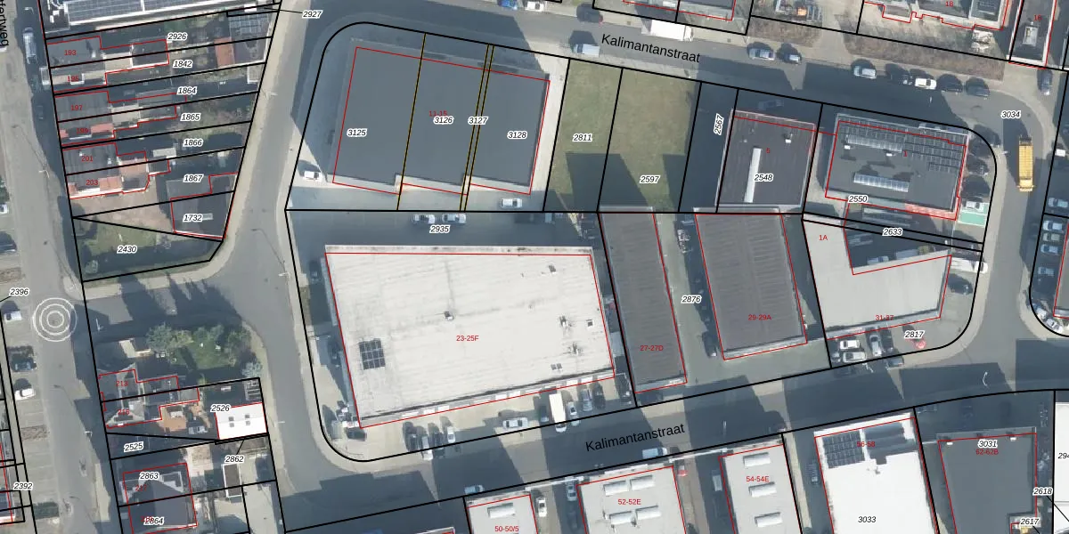 Het perceel waarop Kalimantanstraat 23-E staat heeft een oppervlakte van 2500 m². Dit is een zeer groot perceel. De perceeloppervlakte wordt geregistreerd door het Kadaster. Gedetailleerde informatie over de maten van dit perceel kunt u vinden in het rapport Kadastrale kaart met maatvoering van Kalimantanstraat 23-E.