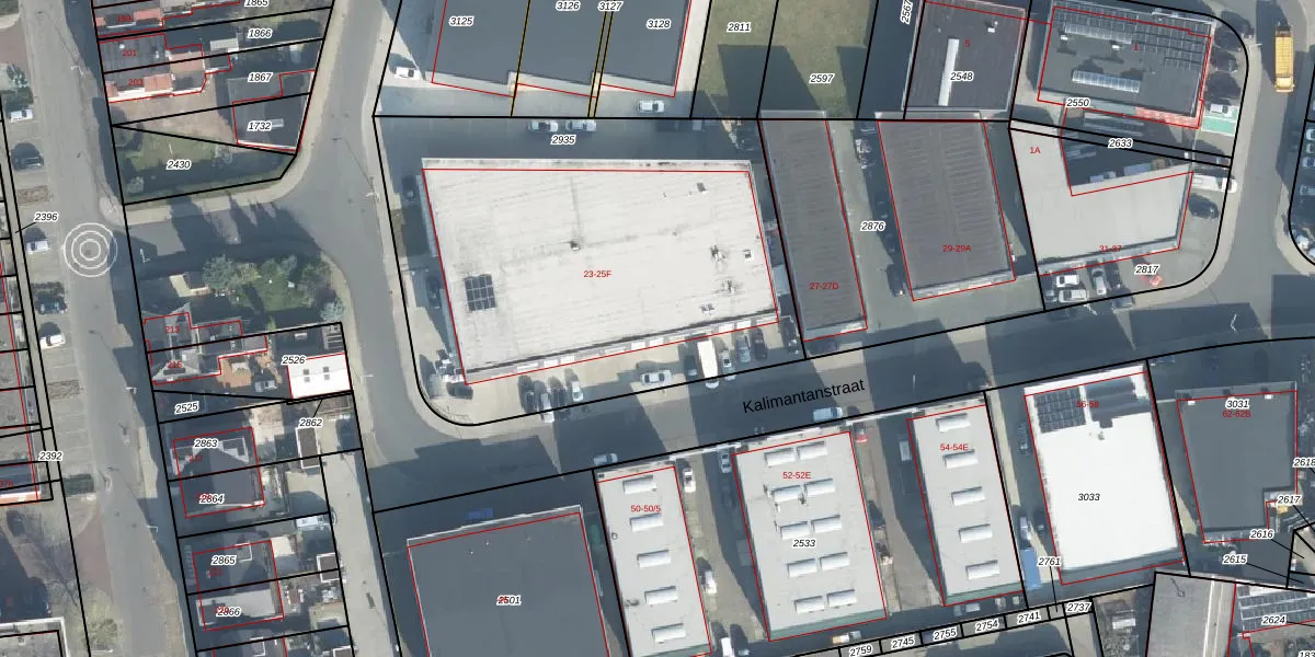 Het perceel waarop Kalimantanstraat 25-D staat heeft een oppervlakte van 2500 m². Dit is een zeer groot perceel. De perceeloppervlakte wordt geregistreerd door het Kadaster. Gedetailleerde informatie over de maten van dit perceel kunt u vinden in het rapport Kadastrale kaart met maatvoering van Kalimantanstraat 25-D.