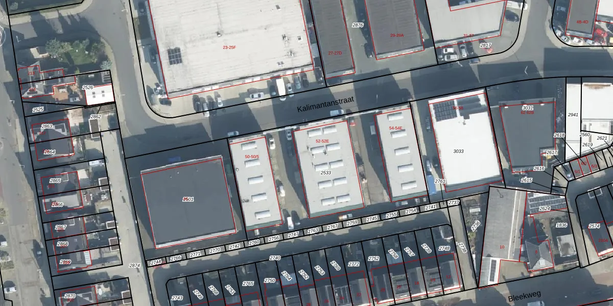 Het perceel waarop Kalimantanstraat 52-2 staat heeft een oppervlakte van 2067 m². Dit is een zeer groot perceel. De perceeloppervlakte wordt geregistreerd door het Kadaster. Gedetailleerde informatie over de maten van dit perceel kunt u vinden in het rapport Kadastrale kaart met maatvoering van Kalimantanstraat 52-2.