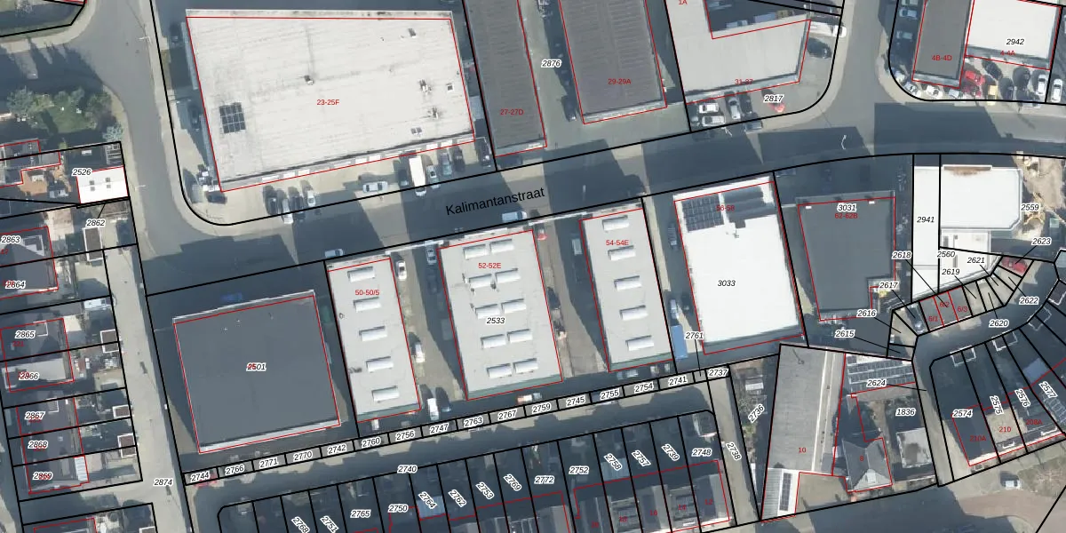 Het perceel waarop Kalimantanstraat 52-B staat heeft een oppervlakte van 2067 m². Dit is een zeer groot perceel. De perceeloppervlakte wordt geregistreerd door het Kadaster. Gedetailleerde informatie over de maten van dit perceel kunt u vinden in het rapport Kadastrale kaart met maatvoering van Kalimantanstraat 52-B.
