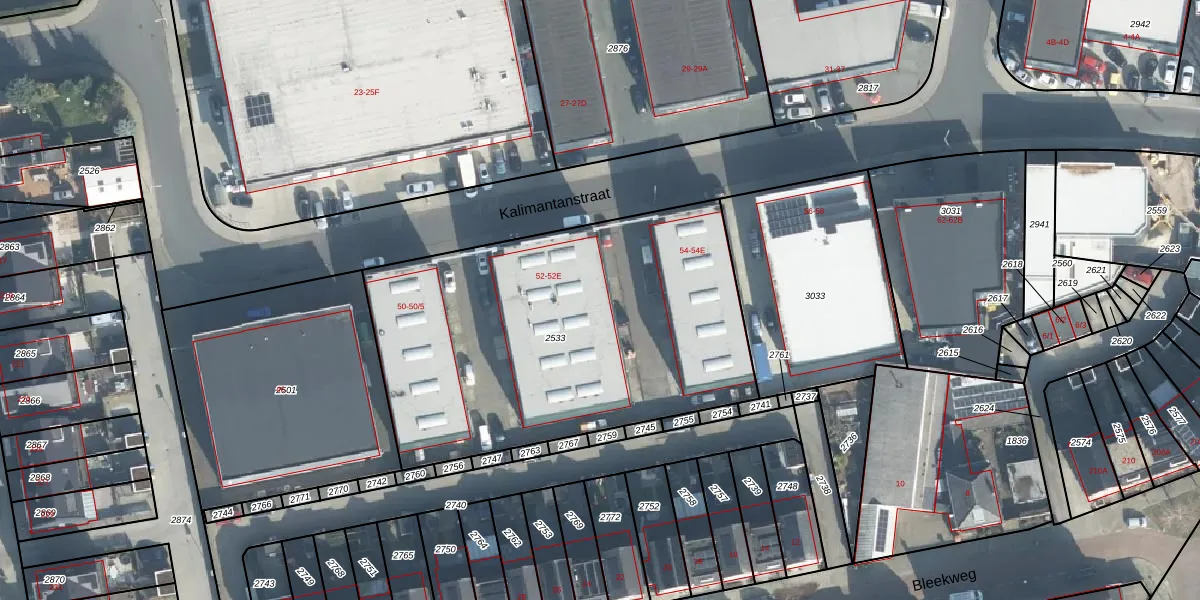 Het perceel waarop Kalimantanstraat 52-C staat heeft een oppervlakte van 2067 m². Dit is een zeer groot perceel. De perceeloppervlakte wordt geregistreerd door het Kadaster. Gedetailleerde informatie over de maten van dit perceel kunt u vinden in het rapport Kadastrale kaart met maatvoering van Kalimantanstraat 52-C.