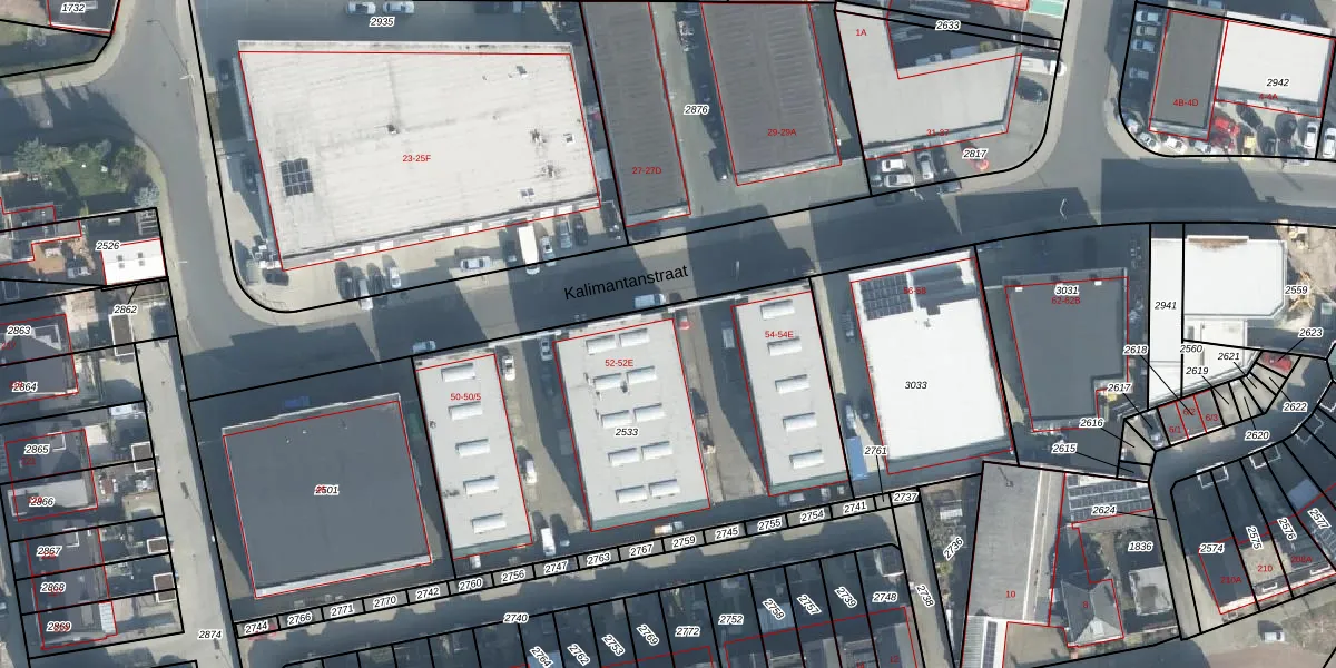 Het perceel waarop Kalimantanstraat 52-A staat heeft een oppervlakte van 2067 m². Dit is een zeer groot perceel. De perceeloppervlakte wordt geregistreerd door het Kadaster. Gedetailleerde informatie over de maten van dit perceel kunt u vinden in het rapport Kadastrale kaart met maatvoering van Kalimantanstraat 52-A.