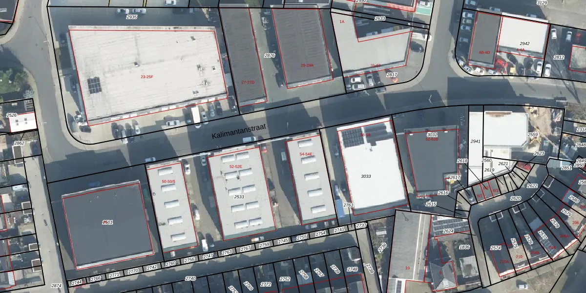 Het perceel waarop Kalimantanstraat 54-A staat heeft een oppervlakte van 2067 m². Dit is een zeer groot perceel. De perceeloppervlakte wordt geregistreerd door het Kadaster. Gedetailleerde informatie over de maten van dit perceel kunt u vinden in het rapport Kadastrale kaart met maatvoering van Kalimantanstraat 54-A.