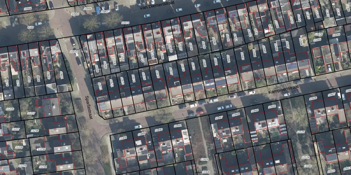 Het perceel waarop Kampioenstraat 13 staat heeft een oppervlakte van 198 m². Dit is een middelgroot perceel. De perceeloppervlakte wordt geregistreerd door het Kadaster. Gedetailleerde informatie over de maten van dit perceel kunt u vinden in het rapport Kadastrale kaart met maatvoering van Kampioenstraat 13.