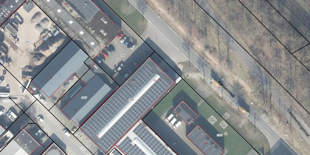 Het perceel waarop Kanaalstraat 125 staat heeft een oppervlakte van 3794 m². Dit is een zeer groot perceel. De perceeloppervlakte wordt geregistreerd door het Kadaster. Gedetailleerde informatie over de maten van dit perceel kunt u vinden in het rapport Kadastrale kaart met maatvoering van Kanaalstraat 125.
