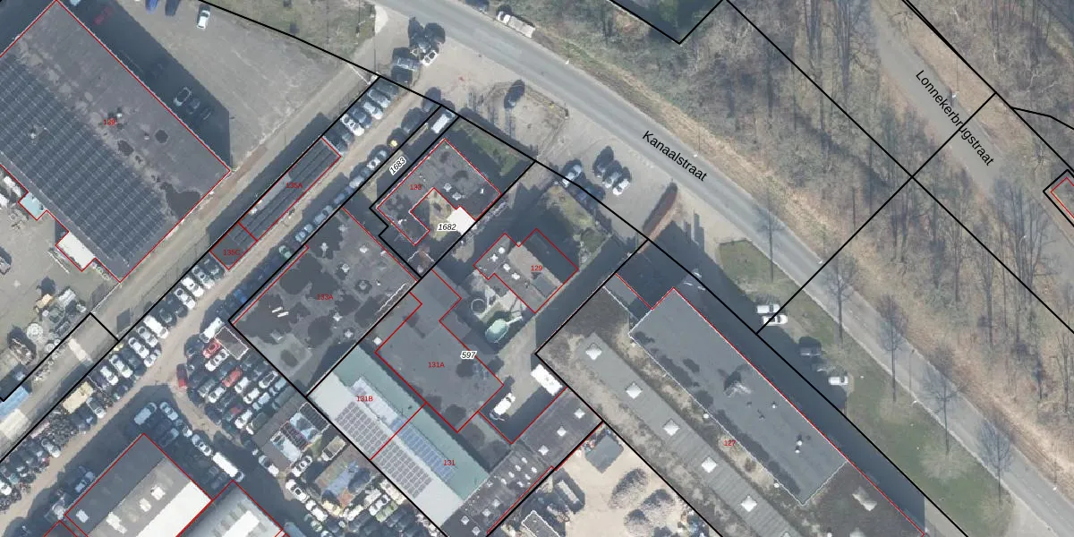 Kanaalstraat 129 is gelegen op kadastraal perceel LNK00T597. Deze kadastrale aanduiding is uniek en wordt gebruikt door het Kadaster om eigendomsrechten en andere zakelijke rechten vast te leggen. Het perceel maakt onderdeel uit van de kadastrale gemeente Lonneker.