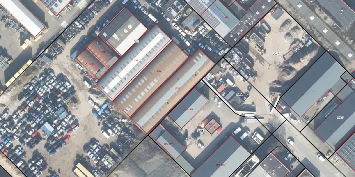 Het perceel waarop Kanaalstraat 135-F staat heeft een oppervlakte van 1,1 ha. Dit is een zeer groot perceel. De perceeloppervlakte wordt geregistreerd door het Kadaster. Gedetailleerde informatie over de maten van dit perceel kunt u vinden in het rapport Kadastrale kaart met maatvoering van Kanaalstraat 135-F.
