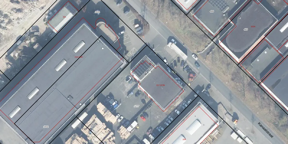Het perceel waarop Kanaalstraat 217 staat heeft een oppervlakte van 3500 m². Dit is een zeer groot perceel. De perceeloppervlakte wordt geregistreerd door het Kadaster. Gedetailleerde informatie over de maten van dit perceel kunt u vinden in het rapport Kadastrale kaart met maatvoering van Kanaalstraat 217.