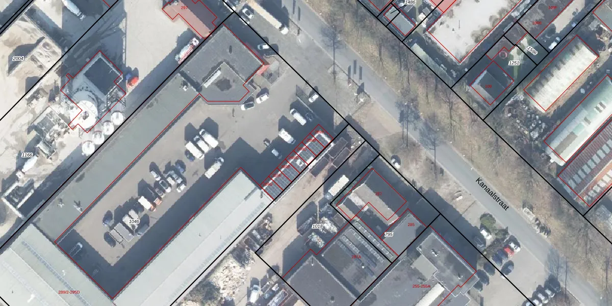 Het perceel waarop Kanaalstraat 289-C staat heeft een oppervlakte van 6309 m². Dit is een zeer groot perceel. De perceeloppervlakte wordt geregistreerd door het Kadaster. Gedetailleerde informatie over de maten van dit perceel kunt u vinden in het rapport Kadastrale kaart met maatvoering van Kanaalstraat 289-C.