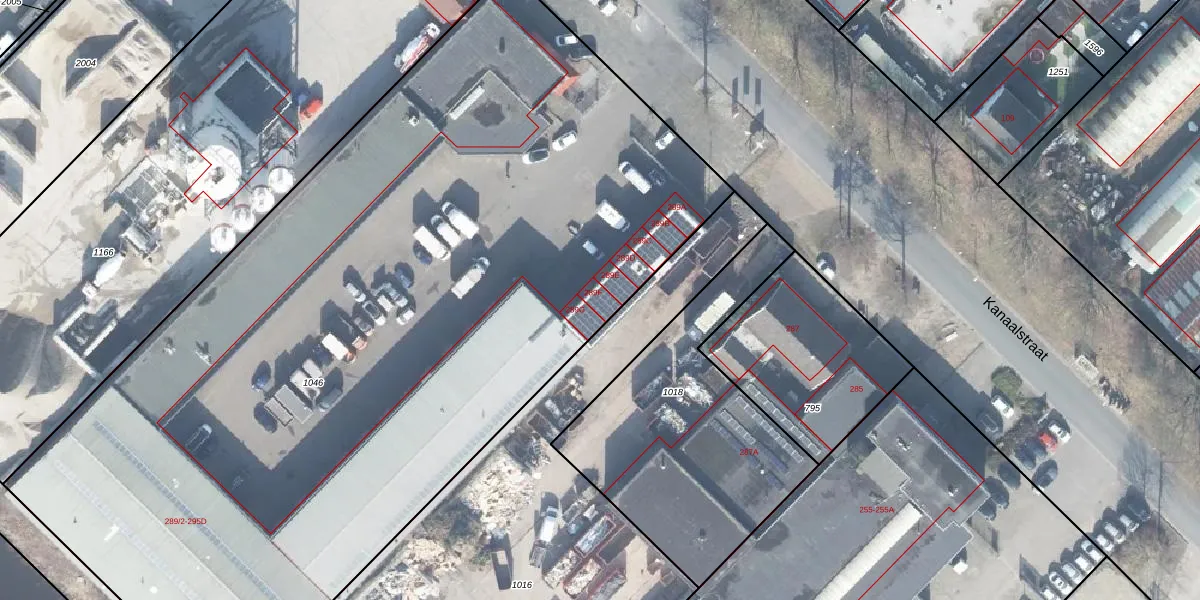 Het perceel waarop Kanaalstraat 289-F staat heeft een oppervlakte van 6309 m². Dit is een zeer groot perceel. De perceeloppervlakte wordt geregistreerd door het Kadaster. Gedetailleerde informatie over de maten van dit perceel kunt u vinden in het rapport Kadastrale kaart met maatvoering van Kanaalstraat 289-F.