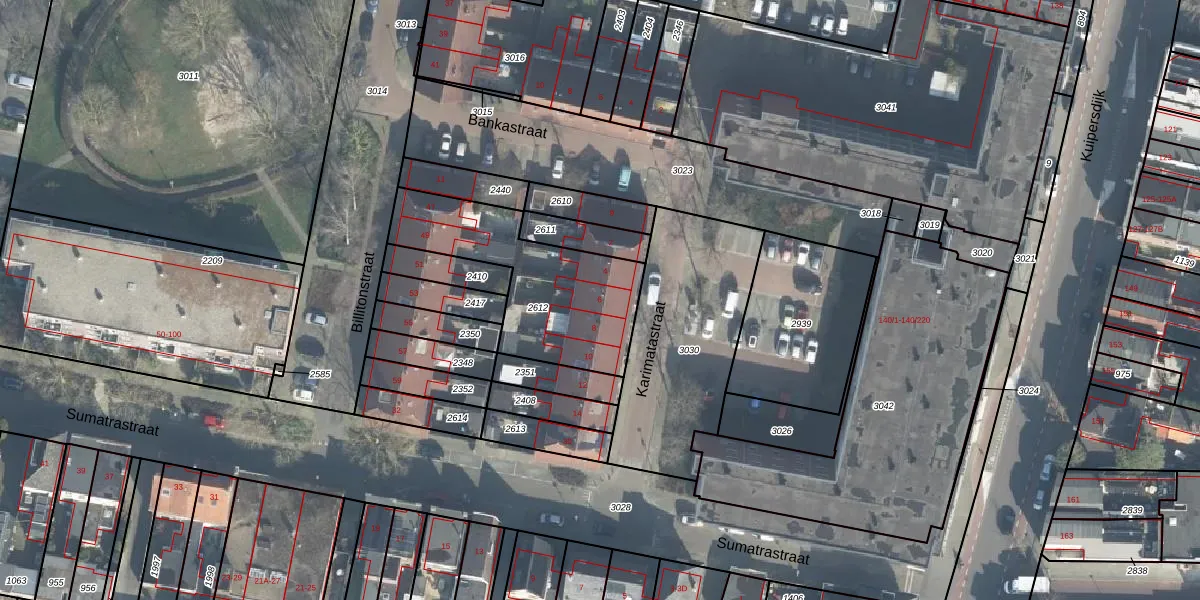 Het perceel waarop Karimatastraat 6 staat heeft een oppervlakte van 618 m². Dit is een groot perceel. De perceeloppervlakte wordt geregistreerd door het Kadaster. Gedetailleerde informatie over de maten van dit perceel kunt u vinden in het rapport Kadastrale kaart met maatvoering van Karimatastraat 6.