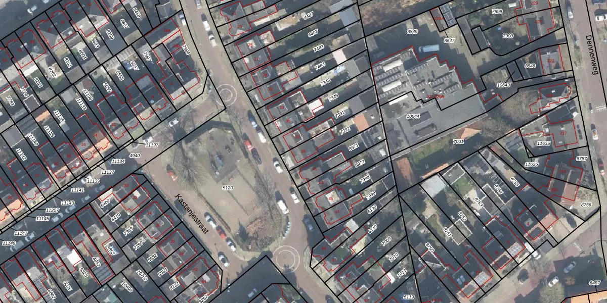 Het perceel waarop Kastanjestraat 39 staat heeft een oppervlakte van 217 m². Dit is een middelgroot perceel. De perceeloppervlakte wordt geregistreerd door het Kadaster. Gedetailleerde informatie over de maten van dit perceel kunt u vinden in het rapport Kadastrale kaart met maatvoering van Kastanjestraat 39.