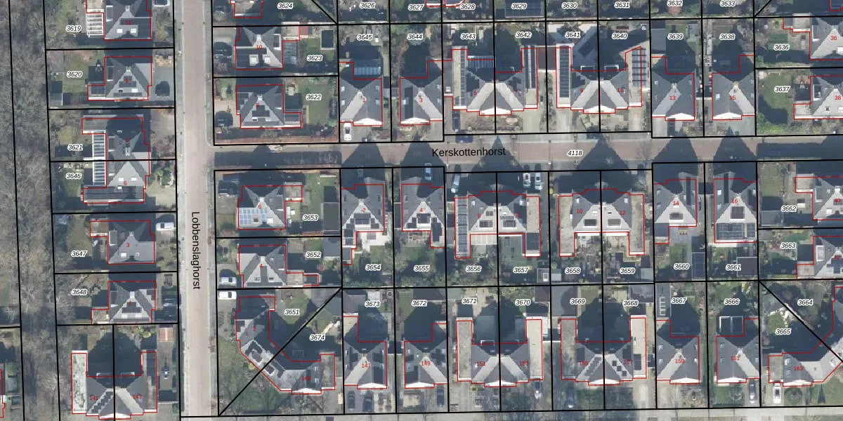 Het perceel waarop Kerskottenhorst 4 staat heeft een oppervlakte van 353 m². Dit is een groot perceel. De perceeloppervlakte wordt geregistreerd door het Kadaster. Gedetailleerde informatie over de maten van dit perceel kunt u vinden in het rapport Kadastrale kaart met maatvoering van Kerskottenhorst 4.