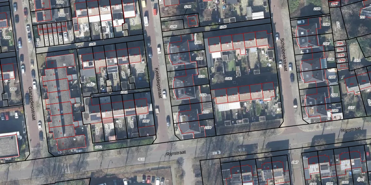 Gebruik de zoekbalk of klik op een perceel voor informatie over de adressen binnen dit perceel.