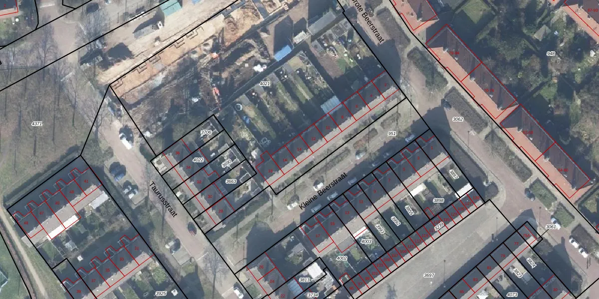 Het perceel waarop Kleine Beerstraat 14 staat heeft een oppervlakte van 4156 m². Dit is een zeer groot perceel. De perceeloppervlakte wordt geregistreerd door het Kadaster. Gedetailleerde informatie over de maten van dit perceel kunt u vinden in het rapport Kadastrale kaart met maatvoering van Kleine Beerstraat 14.