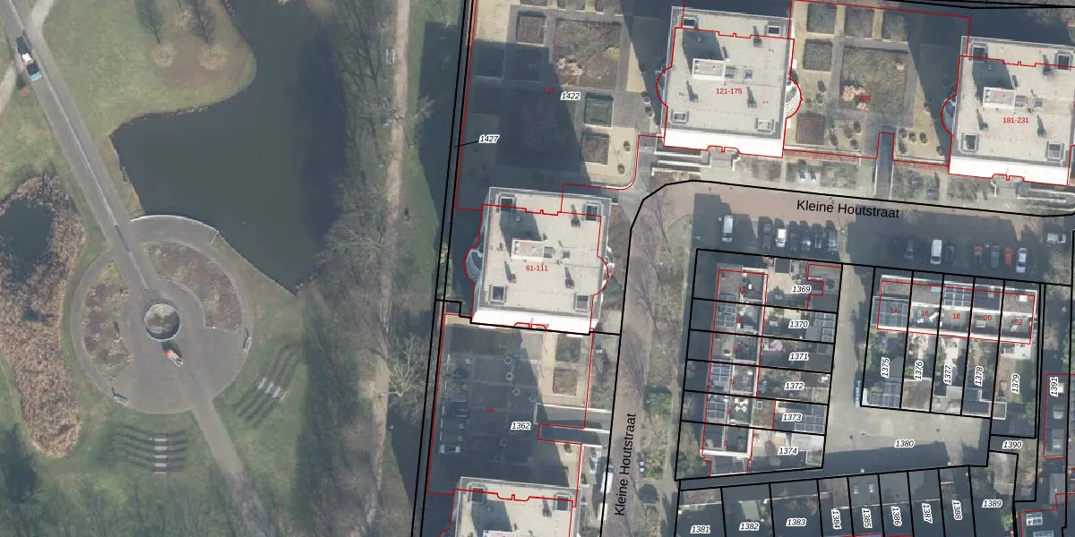 Het perceel waarop Kleine Houtstraat 91 staat heeft een oppervlakte van 5525 m². Dit is een zeer groot perceel. De perceeloppervlakte wordt geregistreerd door het Kadaster. Gedetailleerde informatie over de maten van dit perceel kunt u vinden in het rapport Kadastrale kaart met maatvoering van Kleine Houtstraat 91.