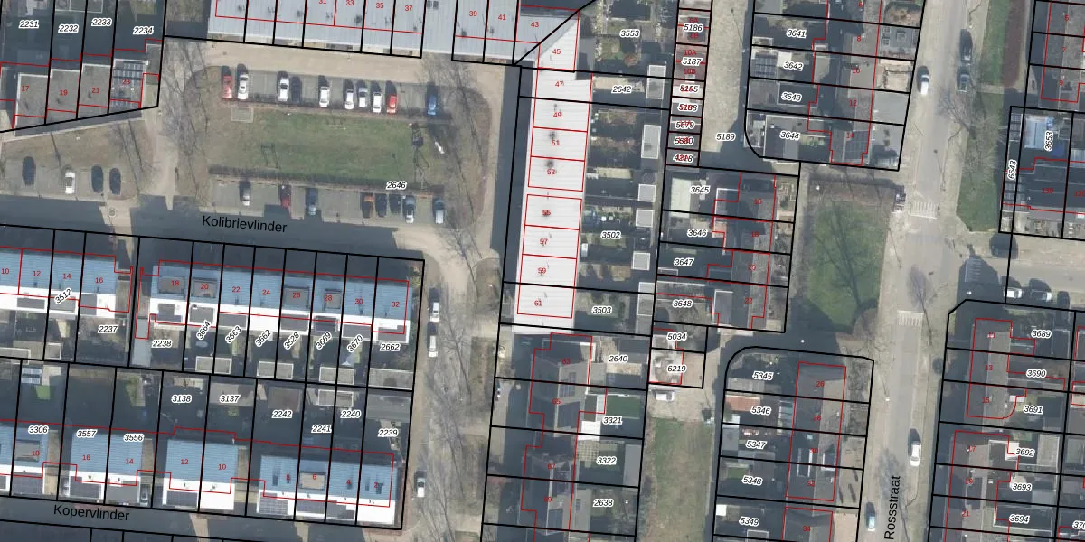 Het perceel waarop Kolibrievlinder 59 staat heeft een oppervlakte van 960 m². Dit is een groot perceel. De perceeloppervlakte wordt geregistreerd door het Kadaster. Gedetailleerde informatie over de maten van dit perceel kunt u vinden in het rapport Kadastrale kaart met maatvoering van Kolibrievlinder 59.