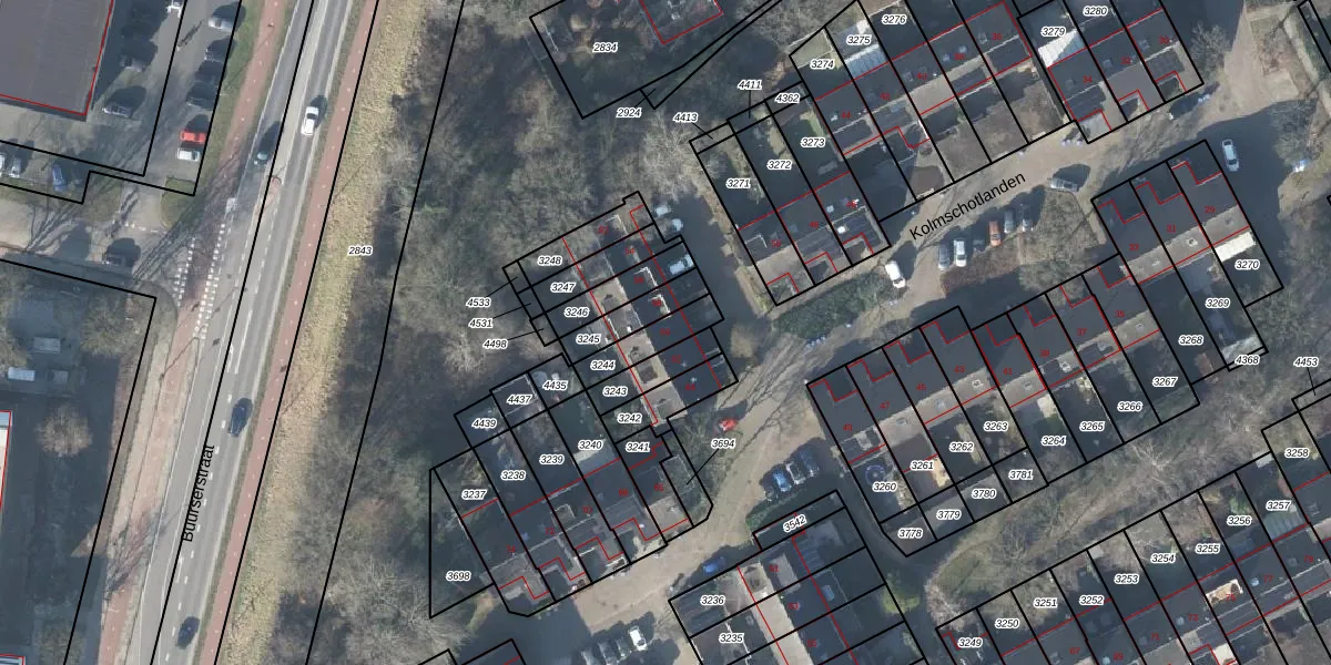 Gebruik de zoekbalk of klik op een perceel voor informatie over de adressen binnen dit perceel.