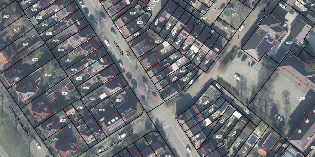 Het perceel waarop Kottendijk 116 staat heeft een oppervlakte van 136 m². Dit is een middelgroot perceel. De perceeloppervlakte wordt geregistreerd door het Kadaster. Gedetailleerde informatie over de maten van dit perceel kunt u vinden in het rapport Kadastrale kaart met maatvoering van Kottendijk 116.