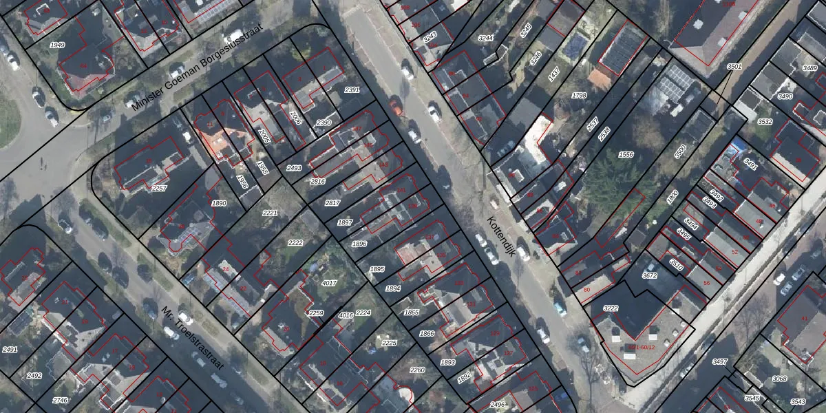 Gebruik de zoekbalk of klik op een perceel voor informatie over de adressen binnen dit perceel.