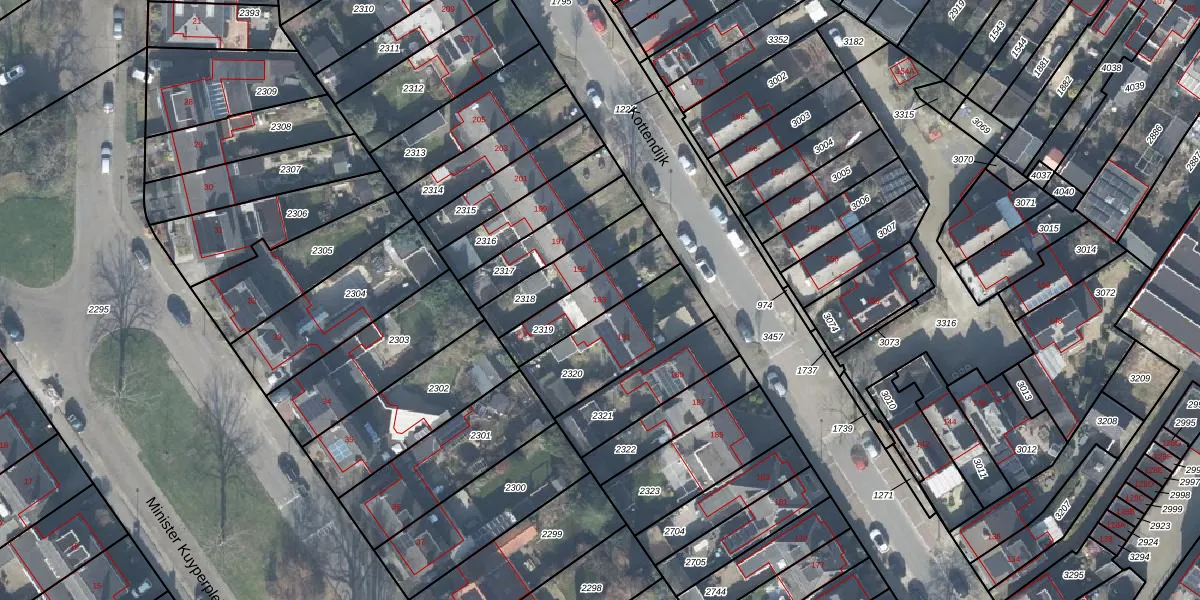 Gebruik de zoekbalk of klik op een perceel voor informatie over de adressen binnen dit perceel.