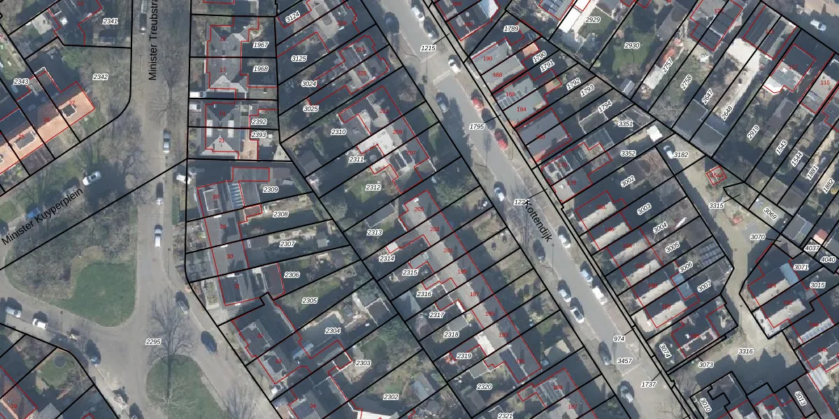 Gebruik de zoekbalk of klik op een perceel voor informatie over de adressen binnen dit perceel.