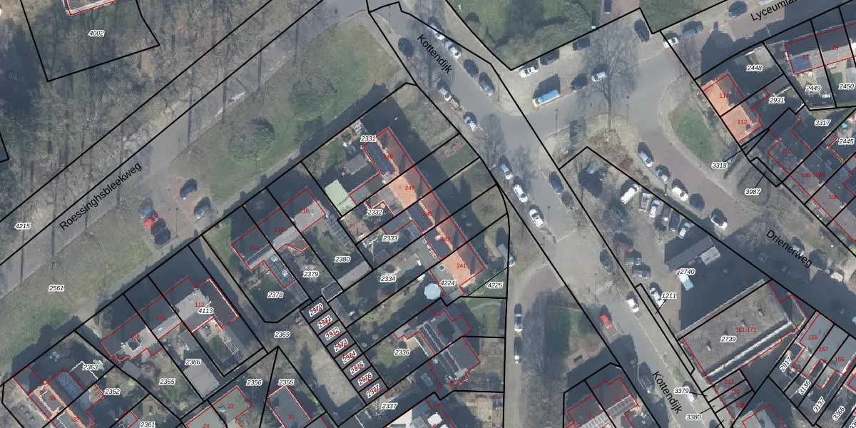 Kottendijk 245 is gelegen op kadastraal perceel ESD00K2333. Deze kadastrale aanduiding is uniek en wordt gebruikt door het Kadaster om eigendomsrechten en andere zakelijke rechten vast te leggen. Het perceel maakt onderdeel uit van de kadastrale gemeente Enschede.