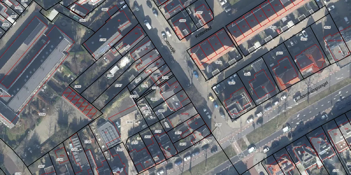Gebruik de zoekbalk of klik op een perceel voor informatie over de adressen binnen dit perceel.