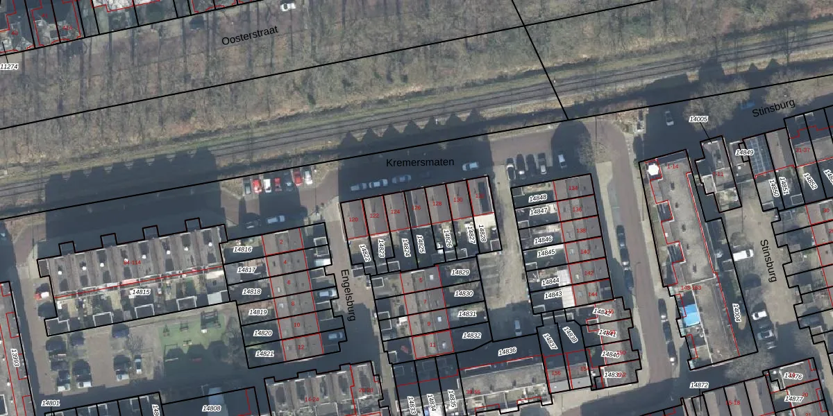Het perceel waarop Kremersmaten 126 staat heeft een oppervlakte van 101 m². Dit is een middelgroot perceel. De perceeloppervlakte wordt geregistreerd door het Kadaster. Gedetailleerde informatie over de maten van dit perceel kunt u vinden in het rapport Kadastrale kaart met maatvoering van Kremersmaten 126.