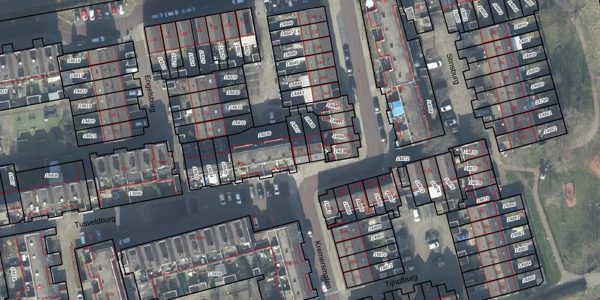 Gebruik de zoekbalk of klik op een perceel voor informatie over de adressen binnen dit perceel.
