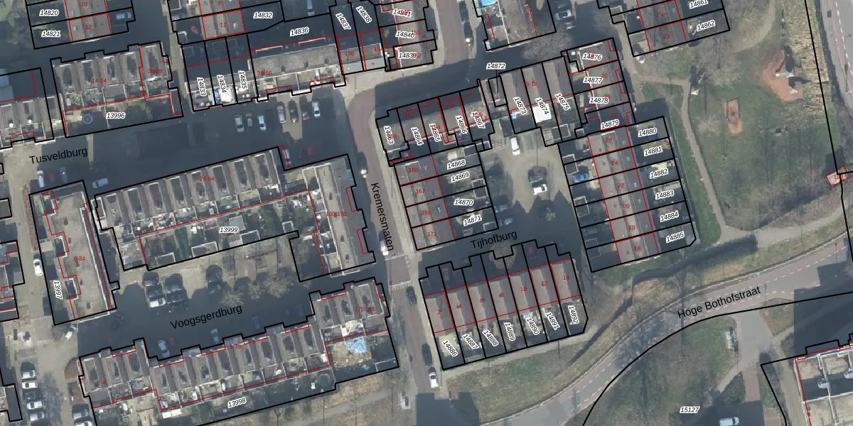 Het perceel waarop Kremersmaten 169 staat heeft een oppervlakte van 100 m². Dit is een middelgroot perceel. De perceeloppervlakte wordt geregistreerd door het Kadaster. Gedetailleerde informatie over de maten van dit perceel kunt u vinden in het rapport Kadastrale kaart met maatvoering van Kremersmaten 169.
