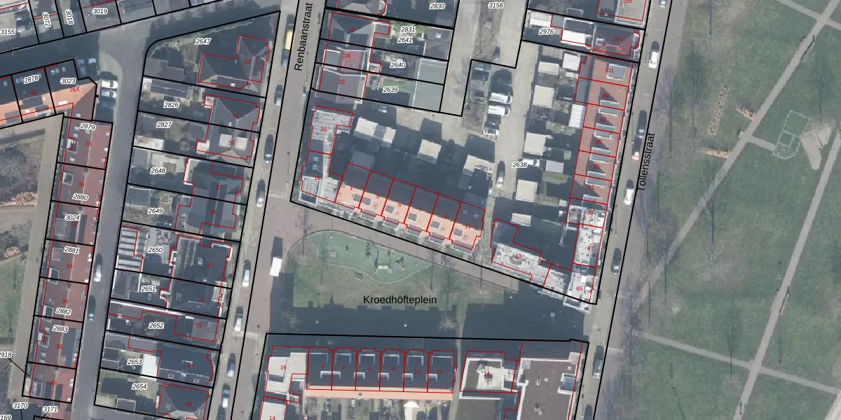 Het perceel waarop Kroedhöfteplein 7 staat heeft een oppervlakte van 3221 m². Dit is een zeer groot perceel. De perceeloppervlakte wordt geregistreerd door het Kadaster. Gedetailleerde informatie over de maten van dit perceel kunt u vinden in het rapport Kadastrale kaart met maatvoering van Kroedhöfteplein 7.
