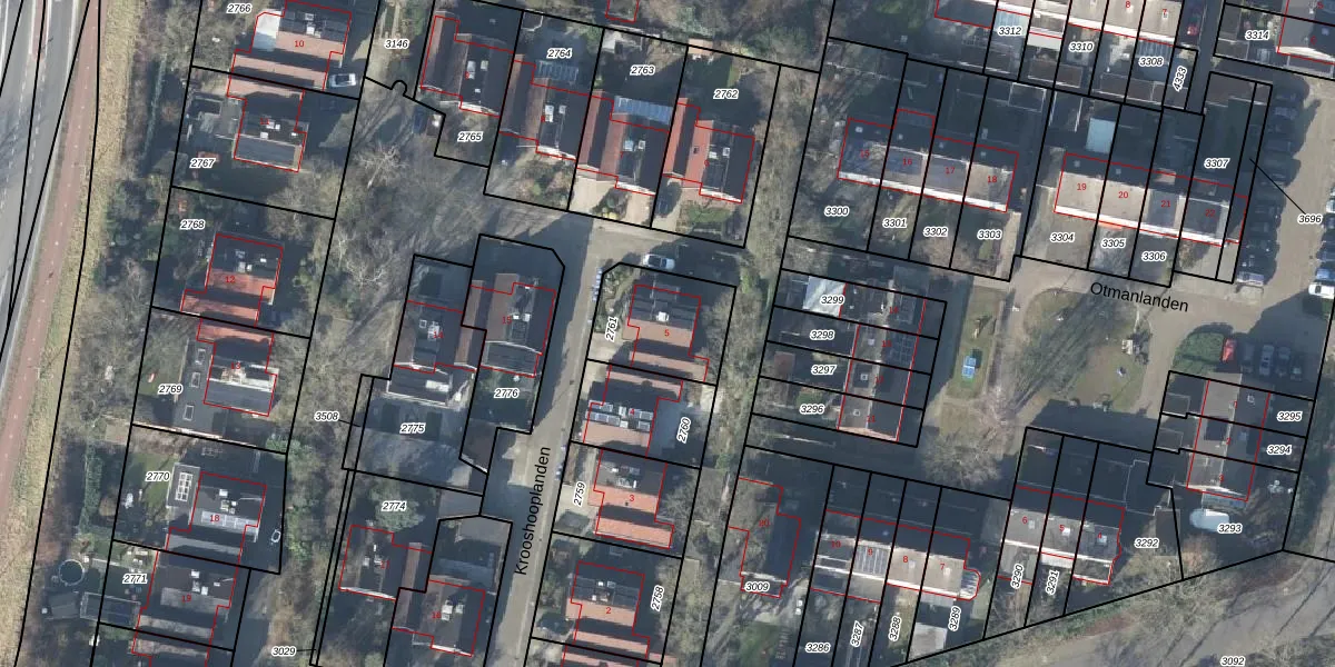 Het perceel waarop Krooshooplanden 5 staat heeft een oppervlakte van 296 m². Dit is een middelgroot perceel. De perceeloppervlakte wordt geregistreerd door het Kadaster. Gedetailleerde informatie over de maten van dit perceel kunt u vinden in het rapport Kadastrale kaart met maatvoering van Krooshooplanden 5.