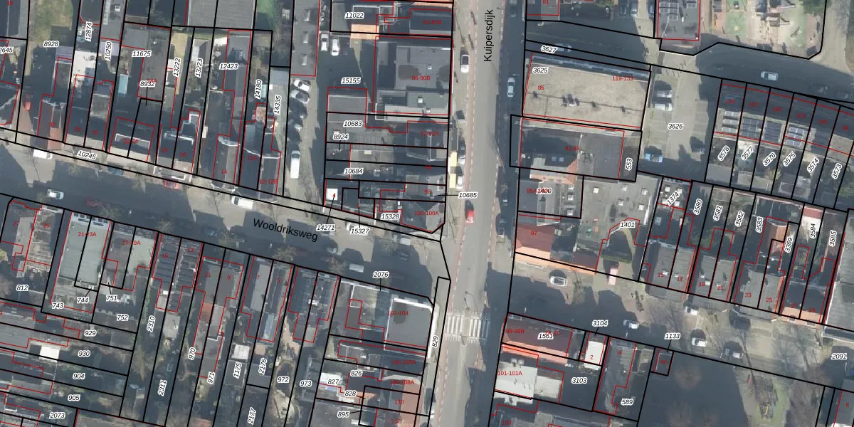 Het perceel waarop Kuipersdijk 100 staat heeft een oppervlakte van 97 m². Dit is een klein perceel. De perceeloppervlakte wordt geregistreerd door het Kadaster. Gedetailleerde informatie over de maten van dit perceel kunt u vinden in het rapport Kadastrale kaart met maatvoering van Kuipersdijk 100.
