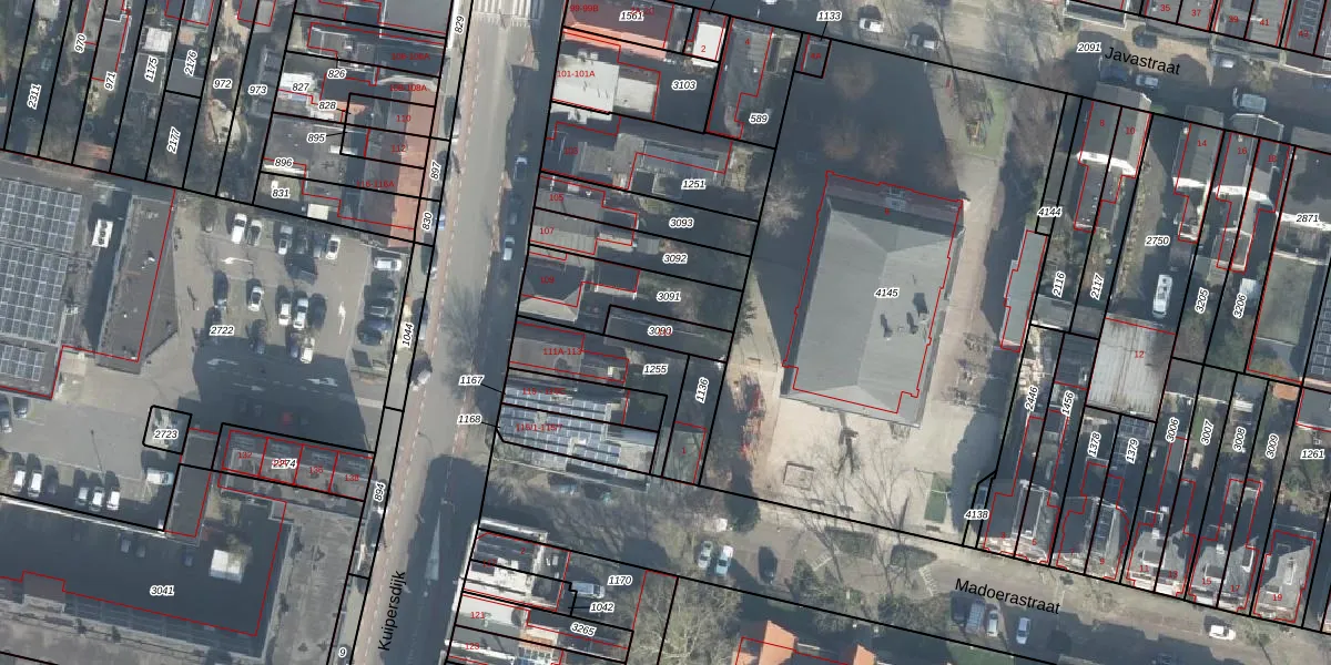 Gebruik de zoekbalk of klik op een perceel voor informatie over de adressen binnen dit perceel.