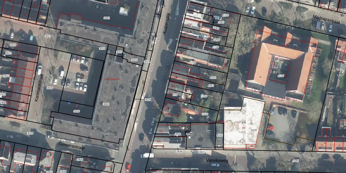 Gebruik de zoekbalk of klik op een perceel voor informatie over de adressen binnen dit perceel.