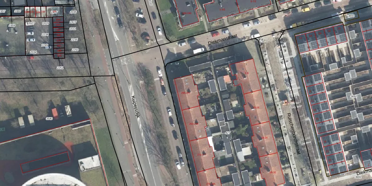 Kuipersdijk 261 is gelegen op kadastraal perceel LNK00P427. Deze kadastrale aanduiding is uniek en wordt gebruikt door het Kadaster om eigendomsrechten en andere zakelijke rechten vast te leggen. Het perceel maakt onderdeel uit van de kadastrale gemeente Lonneker.