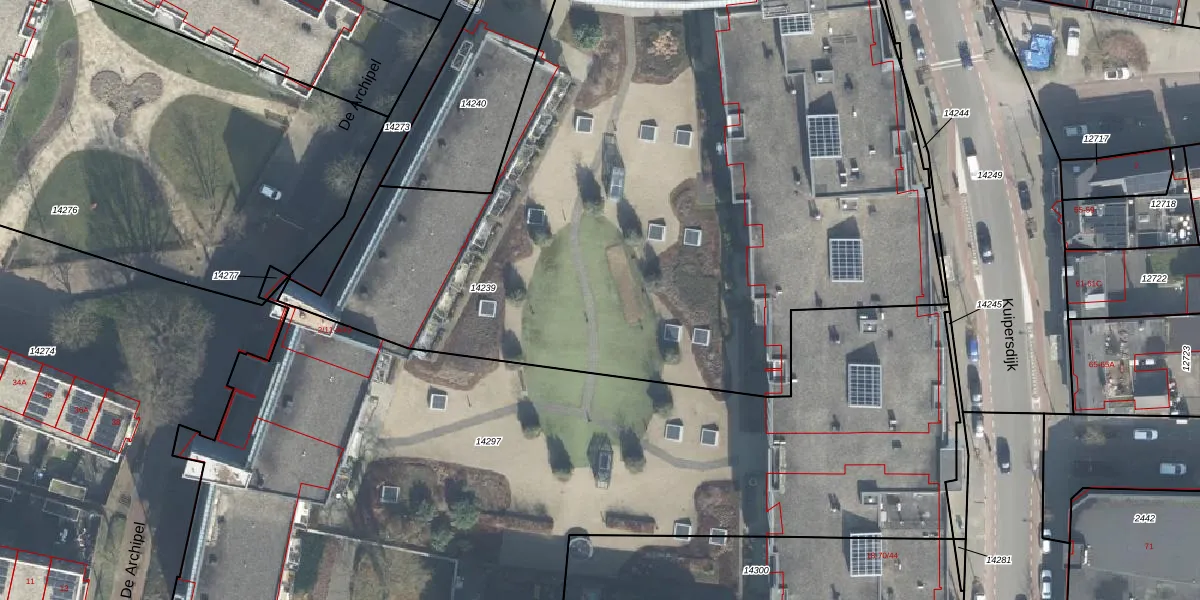 Kuipersdijk 30-34 is gelegen op kadastraal perceel ESD00D14239. Deze kadastrale aanduiding is uniek en wordt gebruikt door het Kadaster om eigendomsrechten en andere zakelijke rechten vast te leggen. Het perceel maakt onderdeel uit van de kadastrale gemeente Enschede.