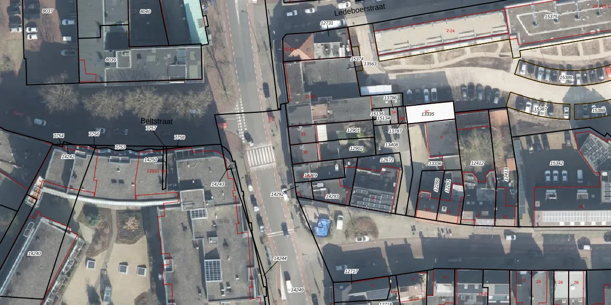 Het adres is gelegen op perceel 12902 in de sectie D en de kadastrale gemeente Enschede. De kadastrale aanduiding is aldus ESD00-D-12902. Het perceel is kleiner dan gemiddeld in Enschede. Het perceel is 169 m² groot, terwijl het gemiddelde ligt op 548,52 m². Het grootste perceel in de kadastrale gemeente is 10,7 ha. Het kleinste perceel heeft een oppervlakte van 0 m². Dit is het enige adres dat aanwezig is op het perceel. De huidige grenzen van het perceel zijn digitaal in de Basisregistratie Kadaster (BRK) geregistreerd op 02-10-2000.