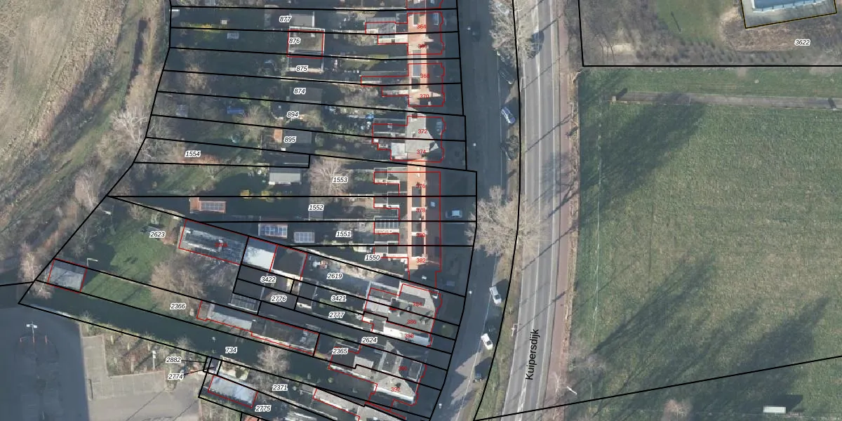 Kuipersdijk 378 is gelegen op kadastraal perceel LNK00P1552. Deze kadastrale aanduiding is uniek en wordt gebruikt door het Kadaster om eigendomsrechten en andere zakelijke rechten vast te leggen. Het perceel maakt onderdeel uit van de kadastrale gemeente Lonneker.