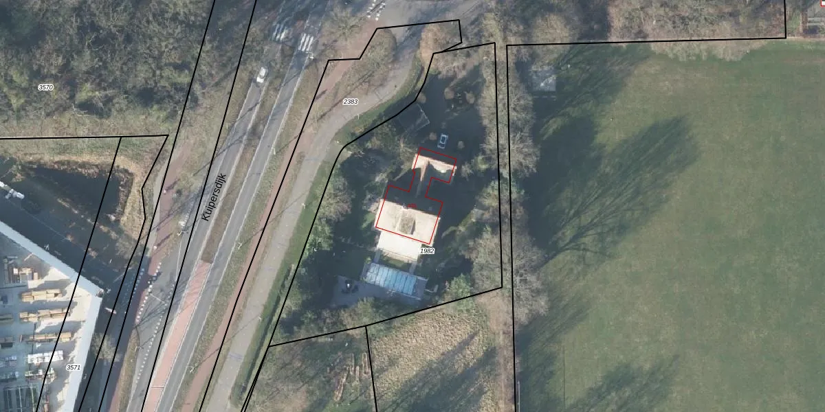 Het perceel waarop Kuipersdijk 401 staat heeft een oppervlakte van 2433 m². Dit is een zeer groot perceel. De perceeloppervlakte wordt geregistreerd door het Kadaster. Gedetailleerde informatie over de maten van dit perceel kunt u vinden in het rapport Kadastrale kaart met maatvoering van Kuipersdijk 401.
