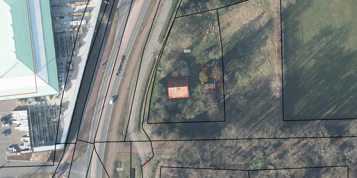 Kuipersdijk 419 is gelegen op kadastraal perceel LNK00P1489. Deze kadastrale aanduiding is uniek en wordt gebruikt door het Kadaster om eigendomsrechten en andere zakelijke rechten vast te leggen. Het perceel maakt onderdeel uit van de kadastrale gemeente Lonneker.