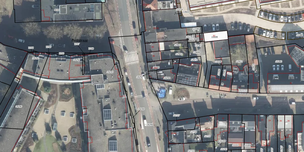 Gebruik de zoekbalk of klik op een perceel voor informatie over de adressen binnen dit perceel.
