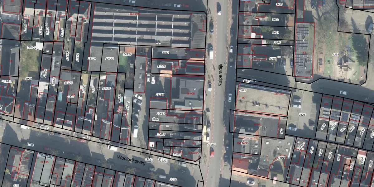 Het perceel waarop Kuipersdijk 86 staat heeft een oppervlakte van 1045 m². Dit is een zeer groot perceel. De perceeloppervlakte wordt geregistreerd door het Kadaster. Gedetailleerde informatie over de maten van dit perceel kunt u vinden in het rapport Kadastrale kaart met maatvoering van Kuipersdijk 86.
