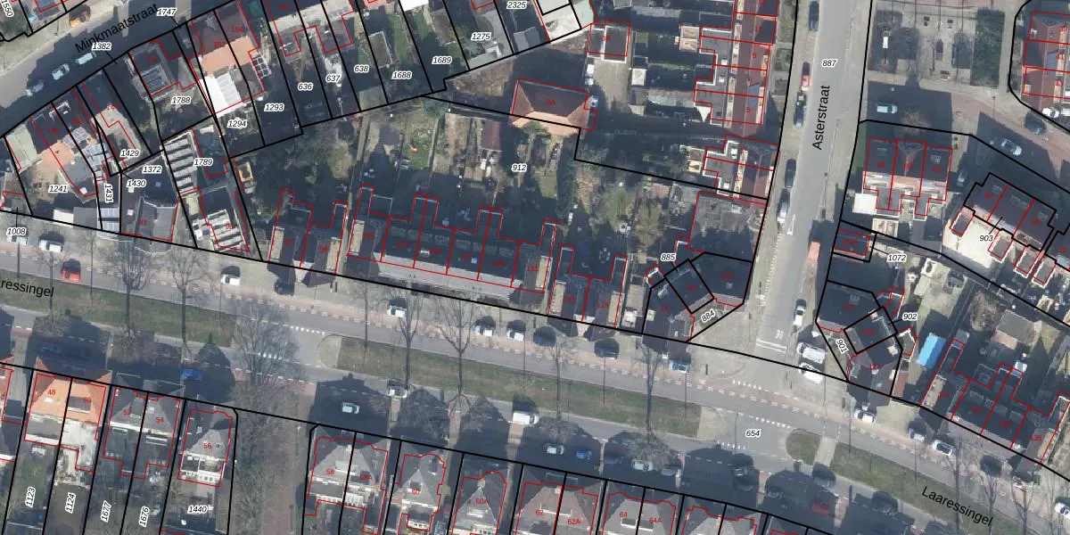 Het perceel waarop Laaressingel 111 staat heeft een oppervlakte van 2718 m². Dit is een zeer groot perceel. De perceeloppervlakte wordt geregistreerd door het Kadaster. Gedetailleerde informatie over de maten van dit perceel kunt u vinden in het rapport Kadastrale kaart met maatvoering van Laaressingel 111.