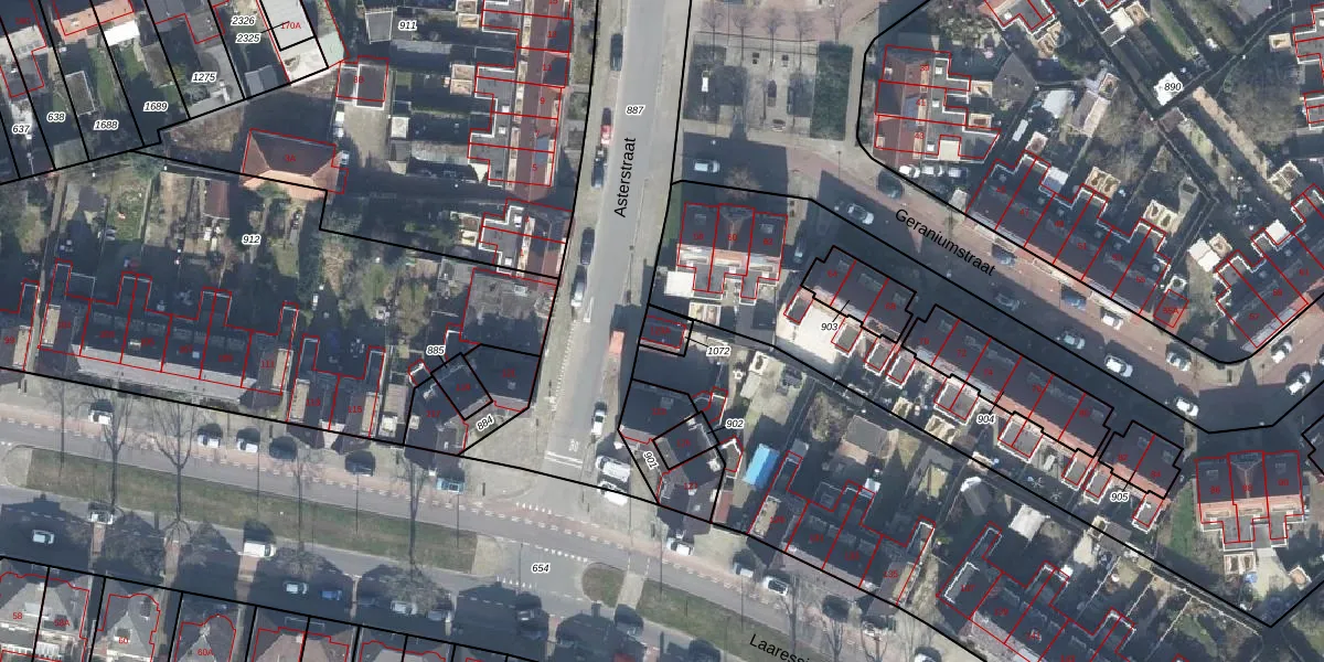 Gebruik de zoekbalk of klik op een perceel voor informatie over de adressen binnen dit perceel.