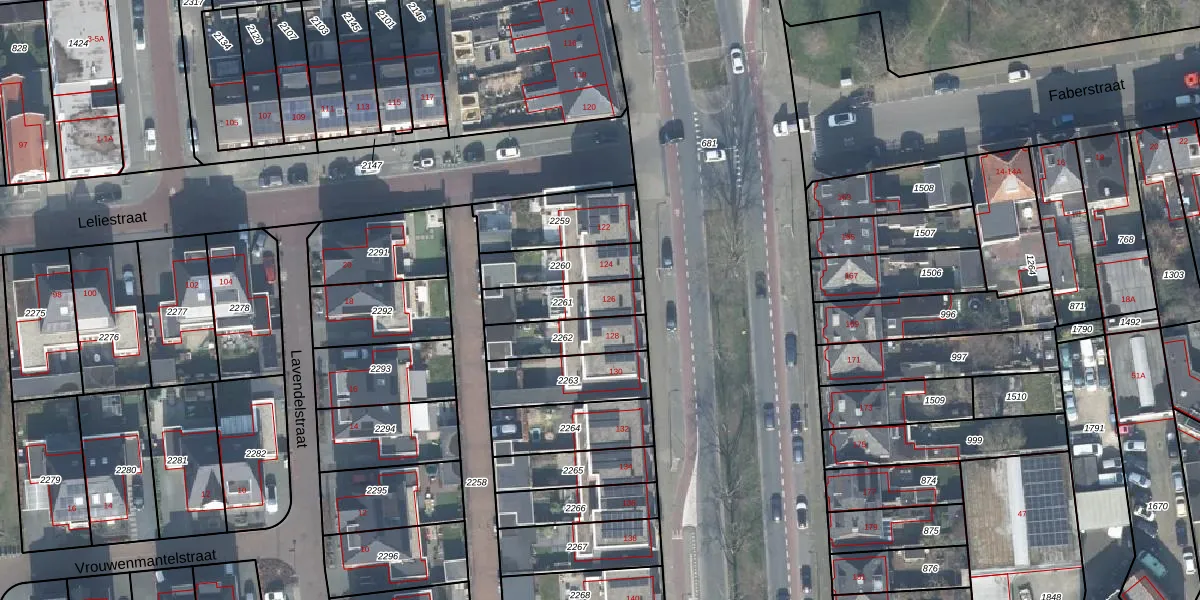 Gebruik de zoekbalk of klik op een perceel voor informatie over de adressen binnen dit perceel.